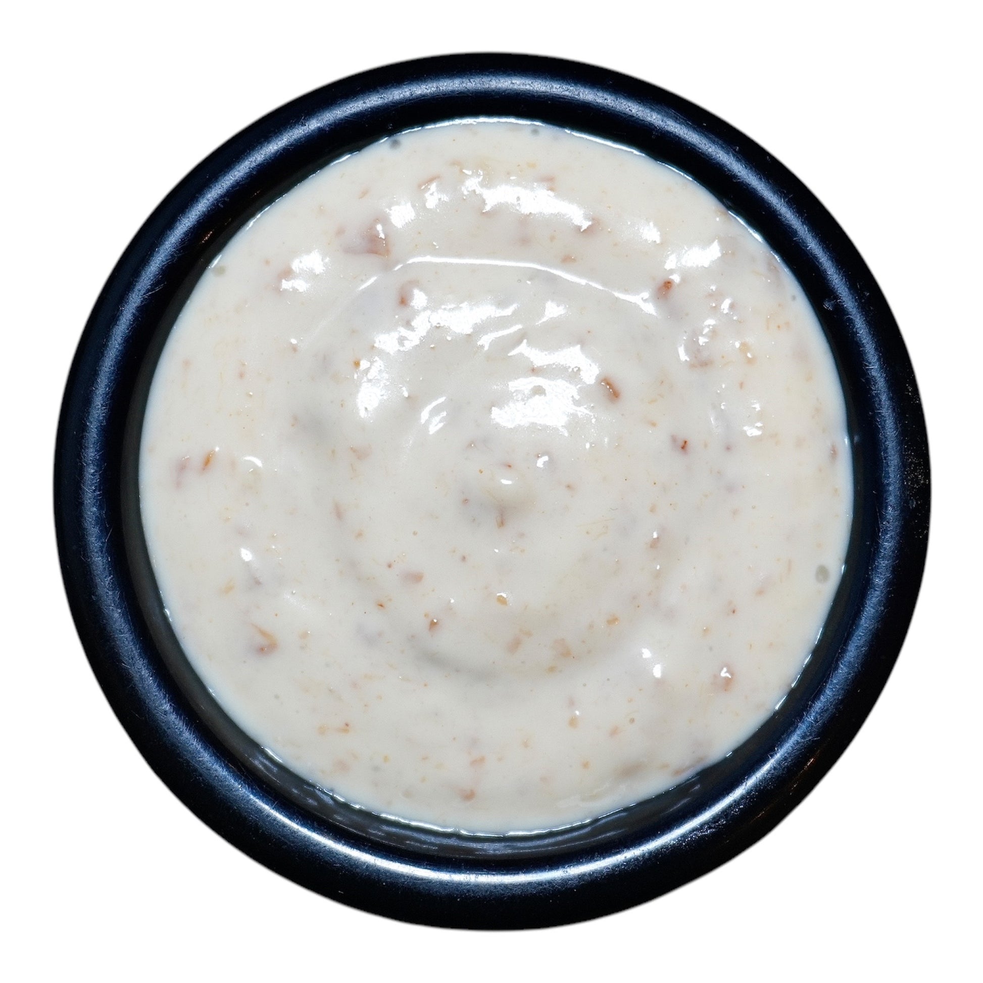 Suave mayonesa con trocitos de bacon que van a llevar tus creaciones a otro nivel, muy polivalente, ideal para combinar con burgers que leven bacon, con vegetales, huevo, jamón deshidratado, cecina, relish de pepinillo, etc.